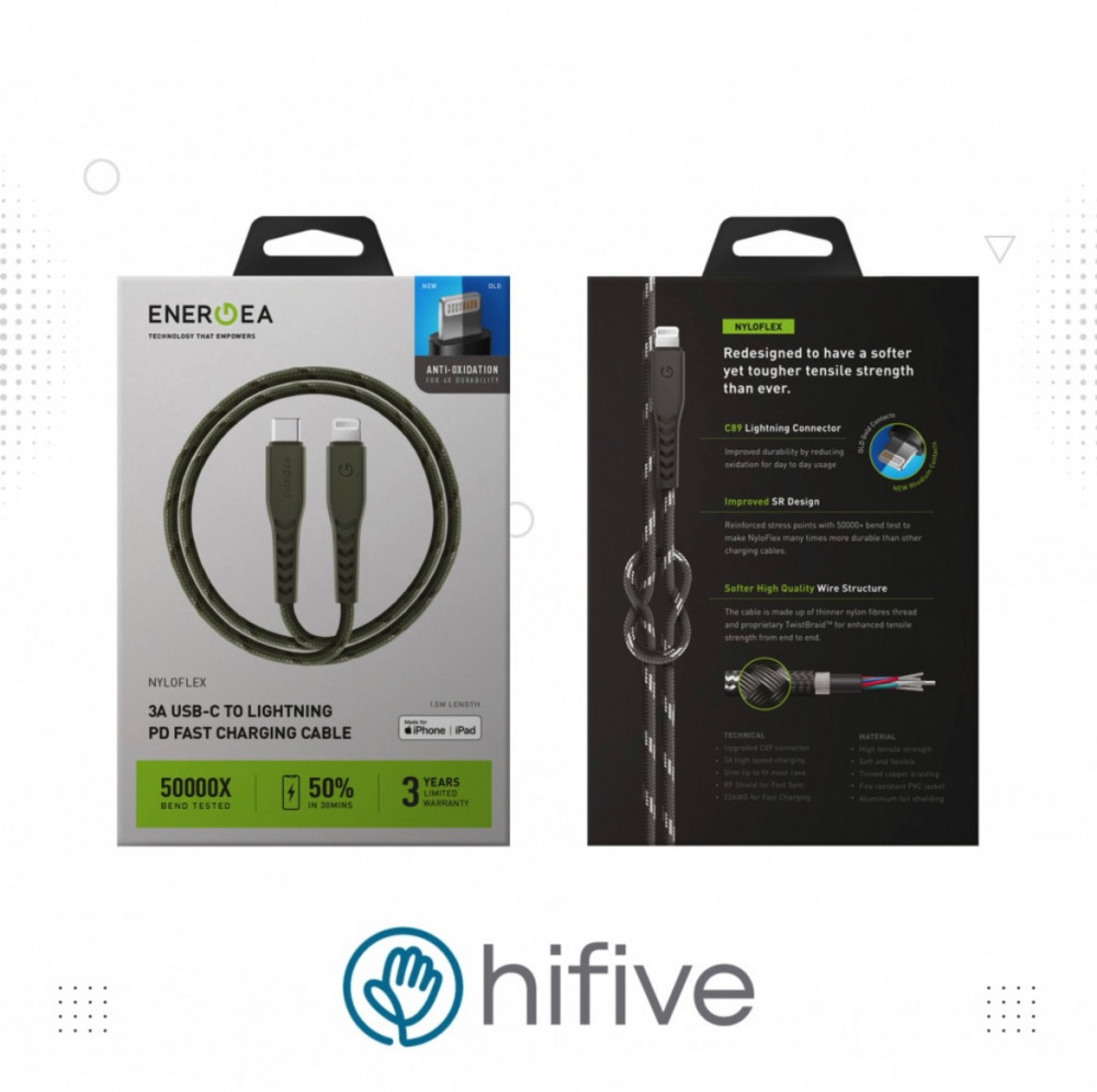 كيبل اينيرجيا نايلون فليكس تايب سي تو لايتننق 1.5 متر - اخضر