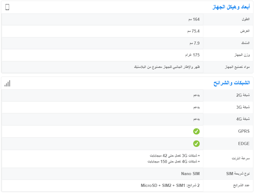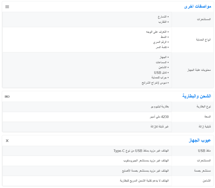 الشاشة: 6.52 بوصة - IPS LCDالذاكرة الداخلية: 64 جيجابايتالرام: 4 جيجابايتالكاميرا: 13 ميجابكسلالمعالج: MediaTek Helio G35البطارية: 4230 ملي أمبير