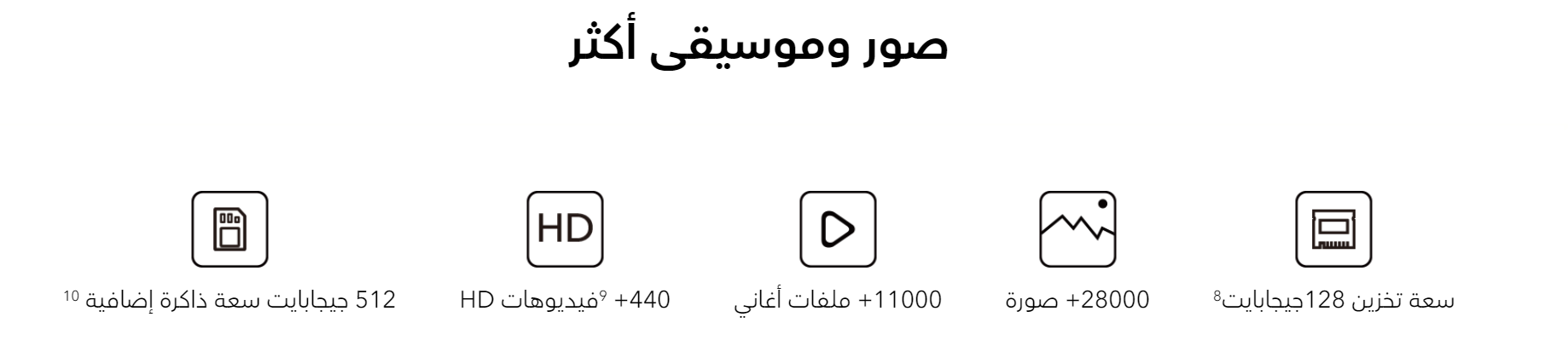 9- تأتي البيانات من مختبرات HONOR. تحسب السعة كالتالي: 10 ميغابايب/أغنية, 4 ميغابايت/ صورة, 250 ميغابايت/فيديو. قد تختلف الأرقام الفعلية بحسب حجم الملف.