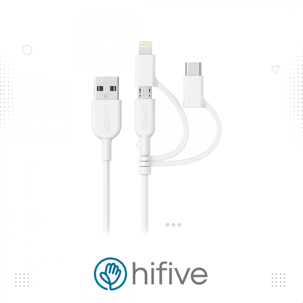 كيبل من انكر باور لاين 2 ثلاث في واحد بطول 0.9 متر / أبيض