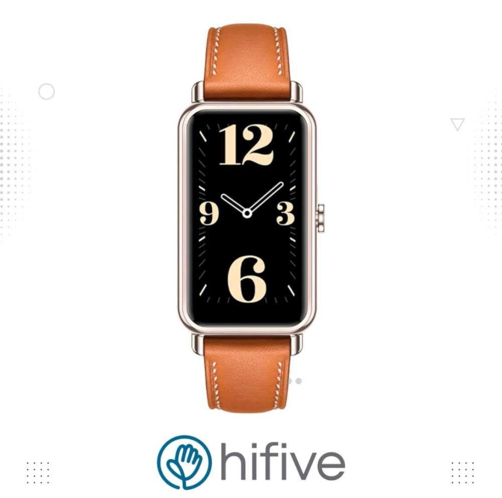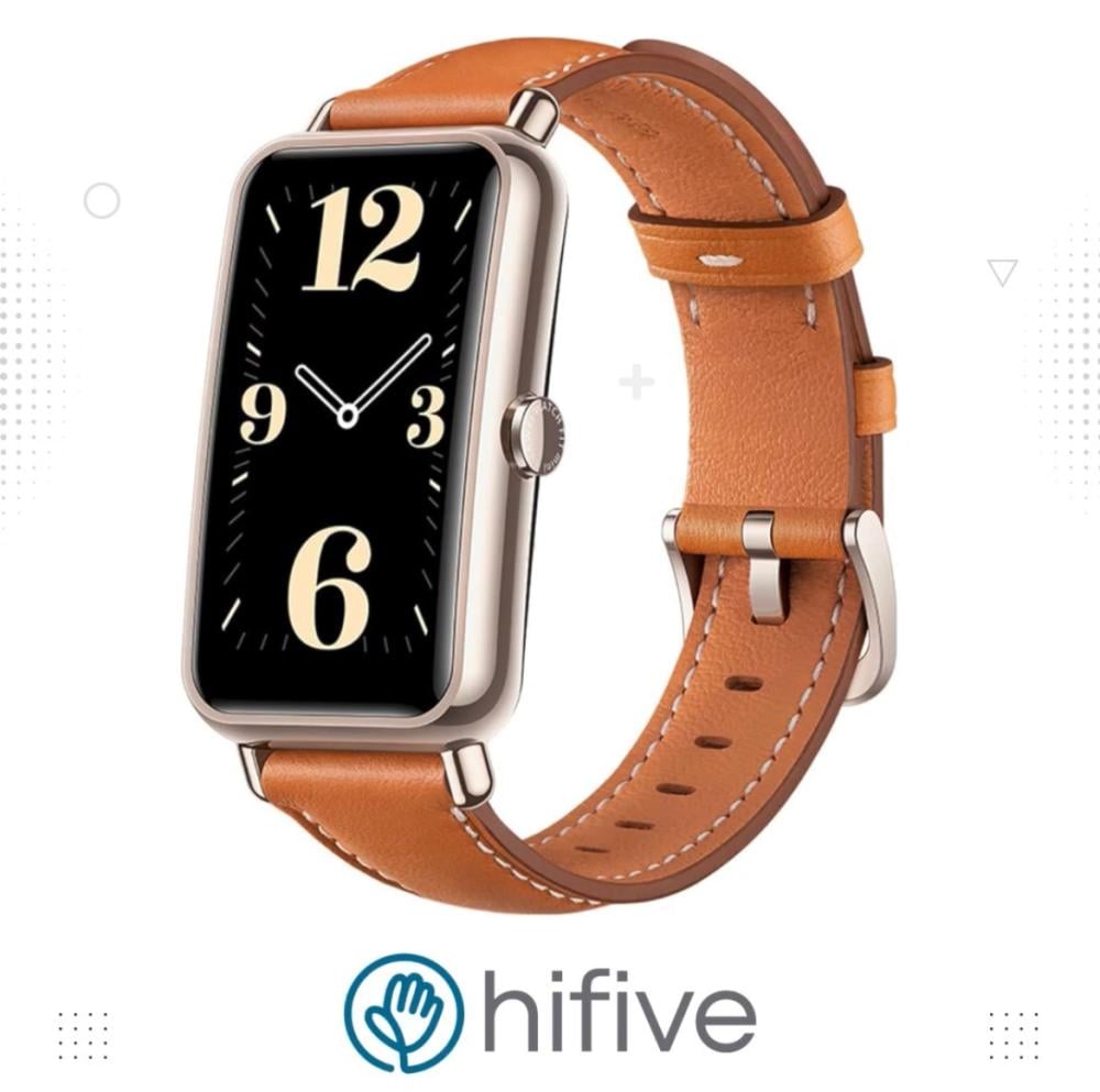 ساعة هواوي فيت ميني الذكية بشاشة 1.47 انش اموليد نسبة الشاشة إلى الجسم 70% عمر بطارية يدوم أسبوعين متابعة الأكسجين في الدم طوال اليوم نظام رعاية صحية محترف للنساء سوار جلدي بلون بني موكا