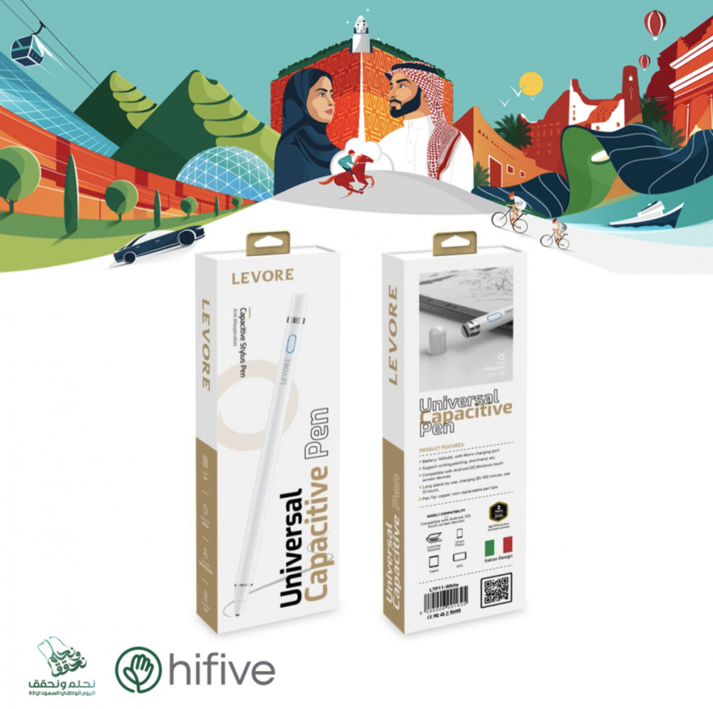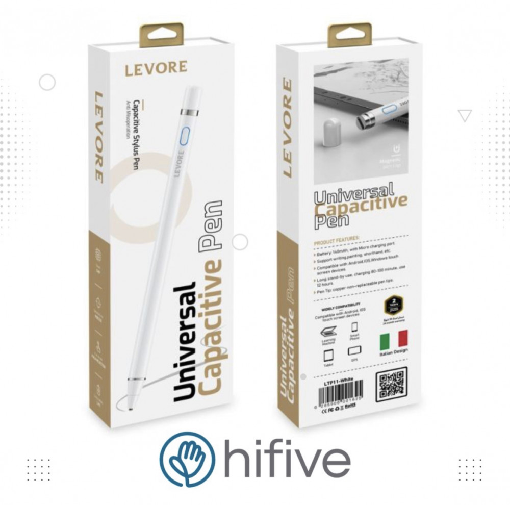 قلم ذكي ليفوري يدعم راحة اليد ومتوافق مع شاشات التي تعمل باللمس للكتابة والرسم مع غطاء ميغناطيسي LTP11 - أبيض