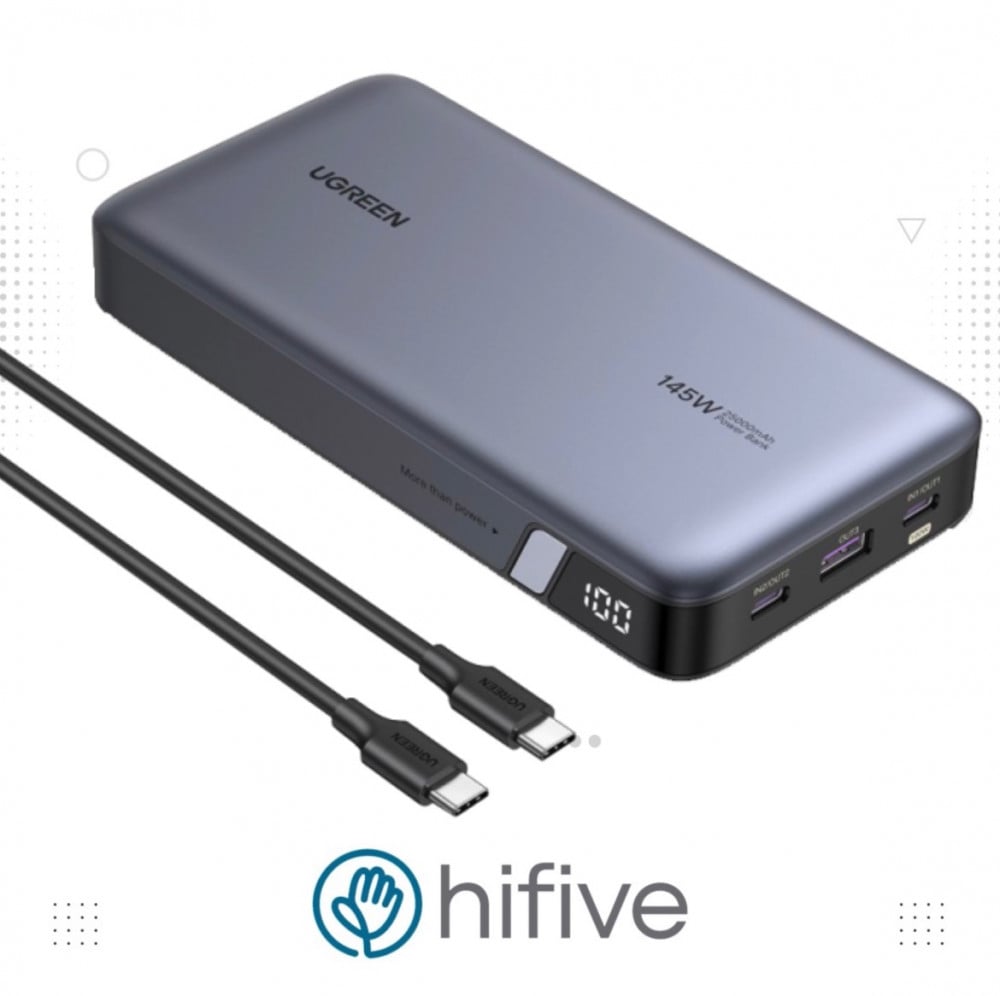 شاحن متنقل يوجرين بمنفذين PD ومنفذ USB بسعة 25000 ملي أمبير وبقوة 145 واط - رمادي
