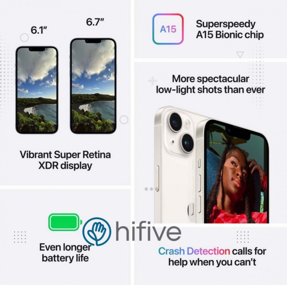 - شريحة A15 بايونك مع وحدة معالجة رسومات غرافيك خماسية النوى لأداء فائق السرعة شبكة 5G فائقة السرعة للاتصال الخلوي