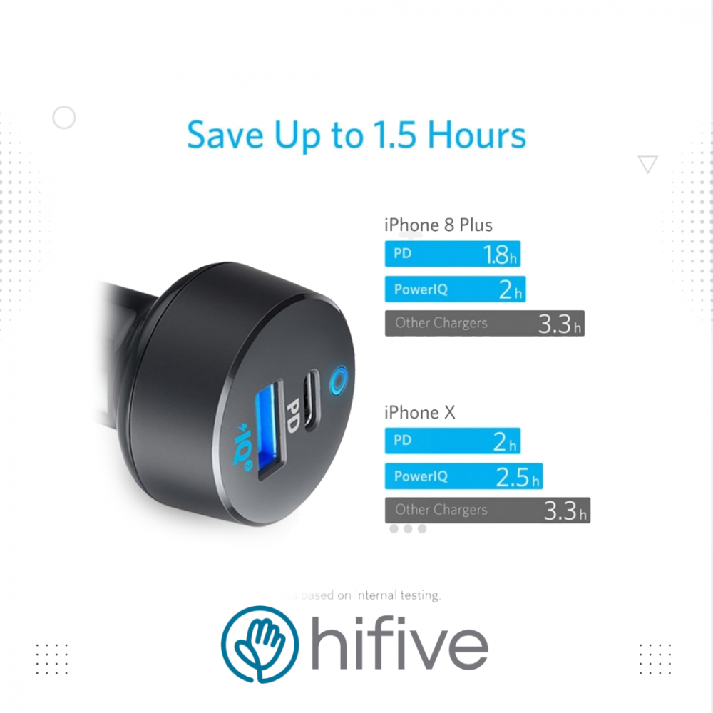 مع شاحن سيارة بور درايف الذي يتمتع بقوة 35 واط معنى ذالك الشحن السريع بقوة اثناء تأدية مهامك اليومية بالسيارة وايضا يتمتع بخاصية شحن جهازين بنفس القوة بفضل خاصية power IQ
