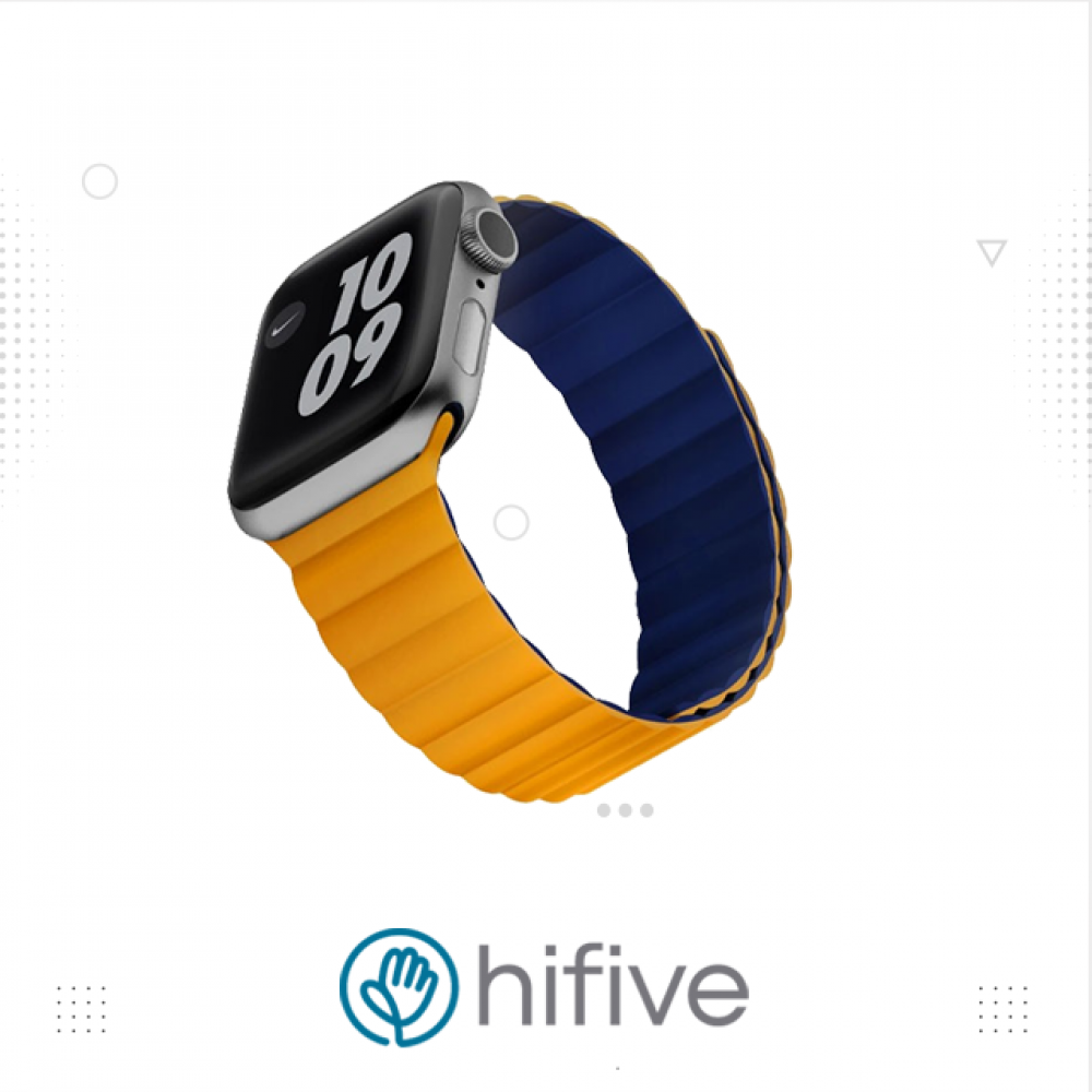 سوار ساعة ابل كوزمو فيفا مدريد مغناطيسي مقاس 42/44 - اصفر وكحلي