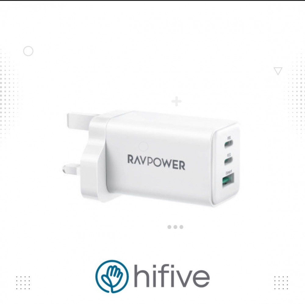 شاحن جداري بتقنية GaN من راف باور بقوة 65 واط بمنفذي PD و منفذ USB