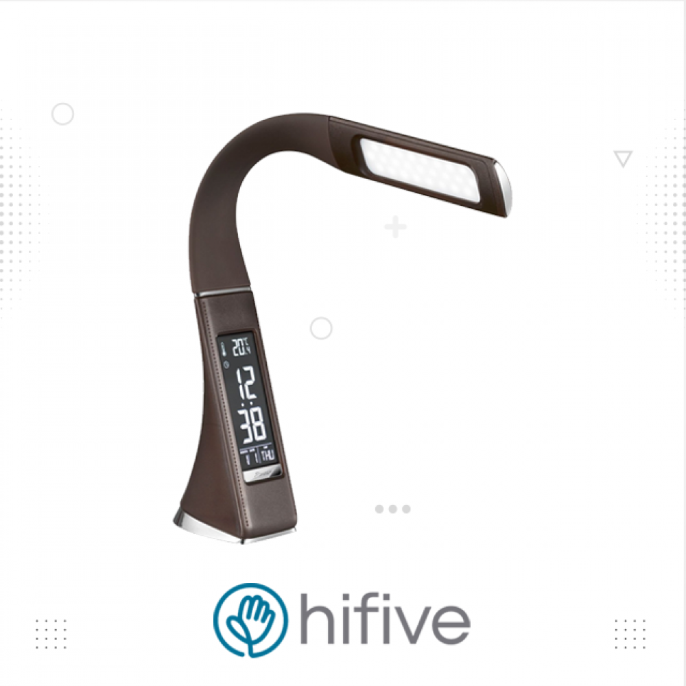 كشاف مكتبي انيقثلاثة درجات سطوع تلبي متطلبات الإضاءة المختلفةشاشة اتش دي المزودة بساعة ومنبه ووظيفة الغفوة تجعلك تتحكم في وقتكتصميم جلد عالي الجودة متين بدرجة كافية لاستخدامه لفترة طويلة.